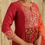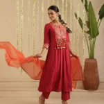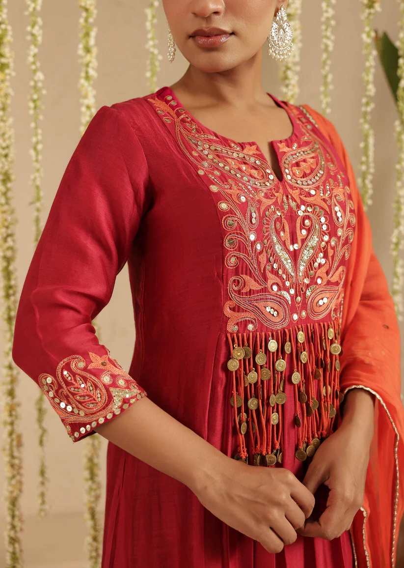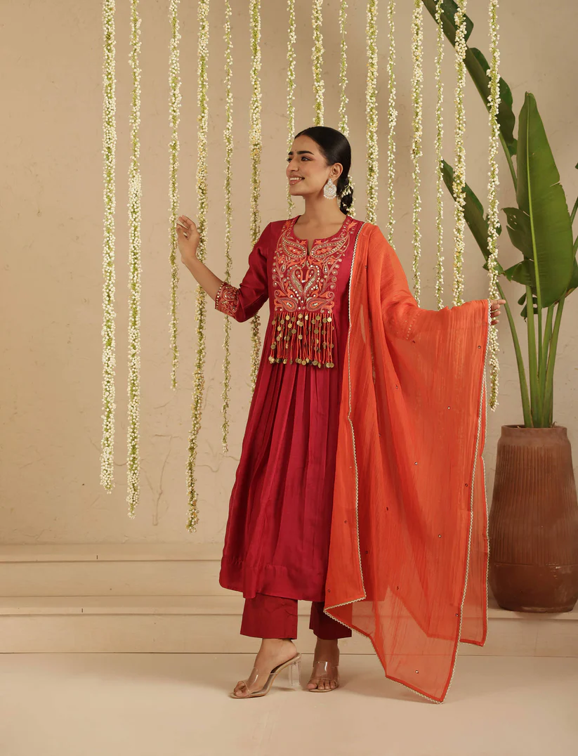 Gulabik Maroon and Orange Tassel Ethnic Suit Set for Women