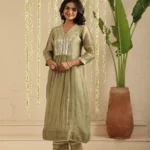 An understated glow meets everyday elegance in this softly luminous kurta set, designed to shimmer with quiet confidence.