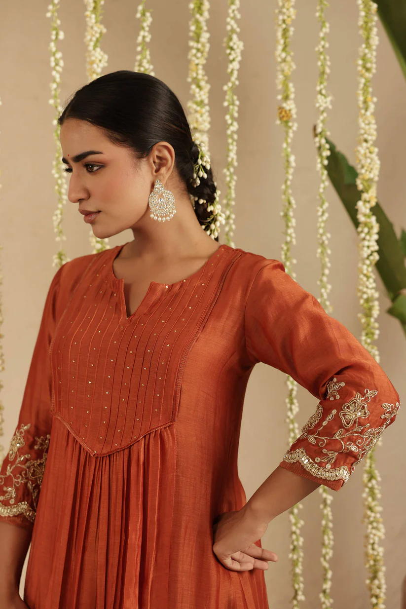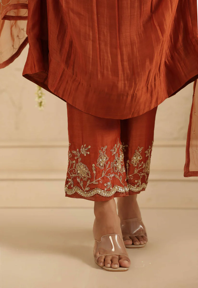 Gulabik Rust Top and Bottom Hand Embroidered Ethnic Suit Set for Women