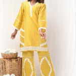 Bright as marigolds in full bloom, this sunshine-yellow kurta set carries joy, warmth, and craft in every detail.